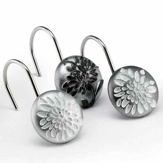 These Erica shower curtain hooks are the perfect finishing touch. The textured floral graphics lend a chic look to your bathroom decor. Complete your bath coordinates collection with these shower curtain hooks. In gray/multi.