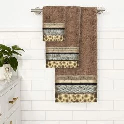 Venture into a new landscape of trendy with these Safari Stripes bath towels. In chocolate.